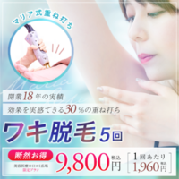 「たった1回でも効果がわかる」と脱毛で大評判のマリアクリニック😊わき5回お試し9,900円のコースもあり、初めての脱毛にもおすすめ🙋♀️