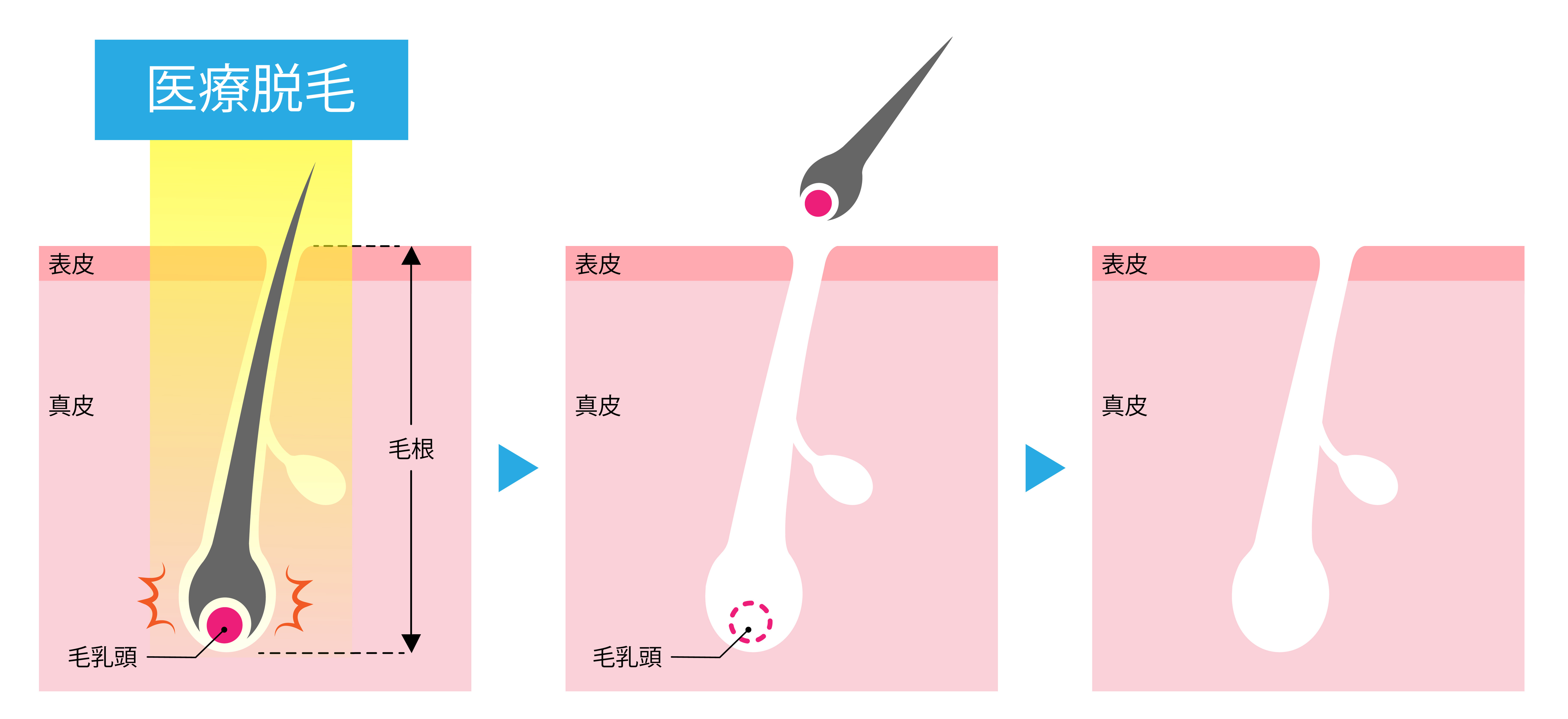 - 高出力のレーザーで発毛組織全体を破壊