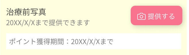 - 「治療前写真」で1%、「治療直後写真」で1%、「治療結果写真」のご提供で3%の付与となります。