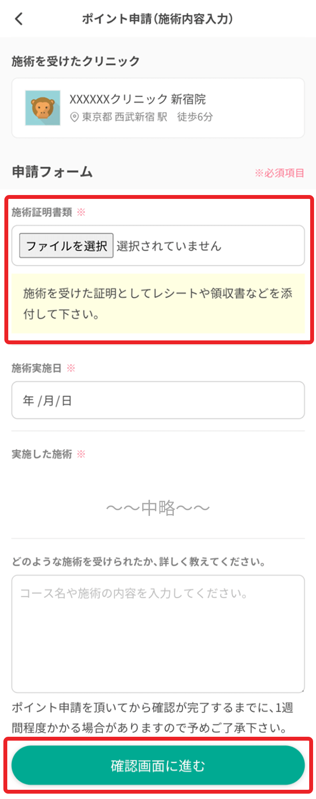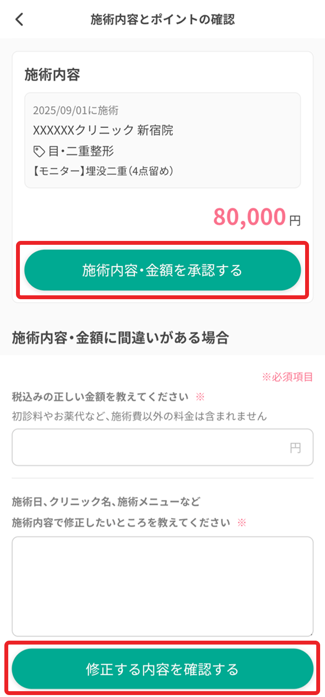 内容に問題がなければ【施術内容・金額を承認する】をクリック。