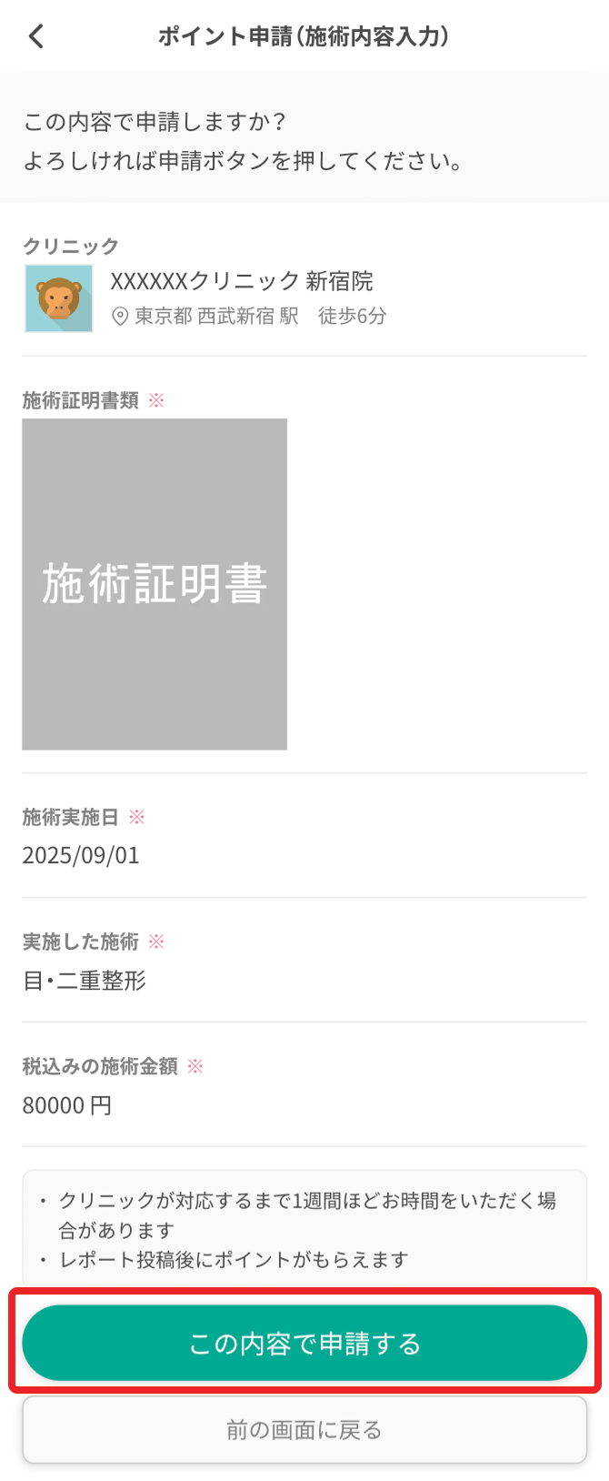 5.内容に問題がなければ【この内容で申請する】をクリック。